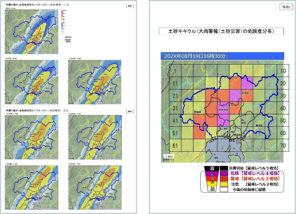 気象庁は、流域雨量指数や危険度分布といった最新の気象防災情報を、防災担当者が正しく理解し、実務で活用できるよう支援するための研修プログラムを開発しています。当社は、その教材開発まで企画段階から一貫して支援しました。本プログラムは、平成25年度作成の「気象庁ワークショップ」をもとに、実際の災害データや内閣府ガイドラインを踏まえて構成された「土砂災害編」「中小河川洪水災害編」「風水害編」の3編で構成。実災害を経験した自治体のデータや、有識者の助言、試行の成果をもとに改良を重ねています。誰でも研修を再現できるよう、事前学習資料、スライド教材、進行マニュアルなどを一体的に整備。自治体現場で求められる判断力・伝達力を高める、実践的な研修ツールとして完成させました。【特徴】